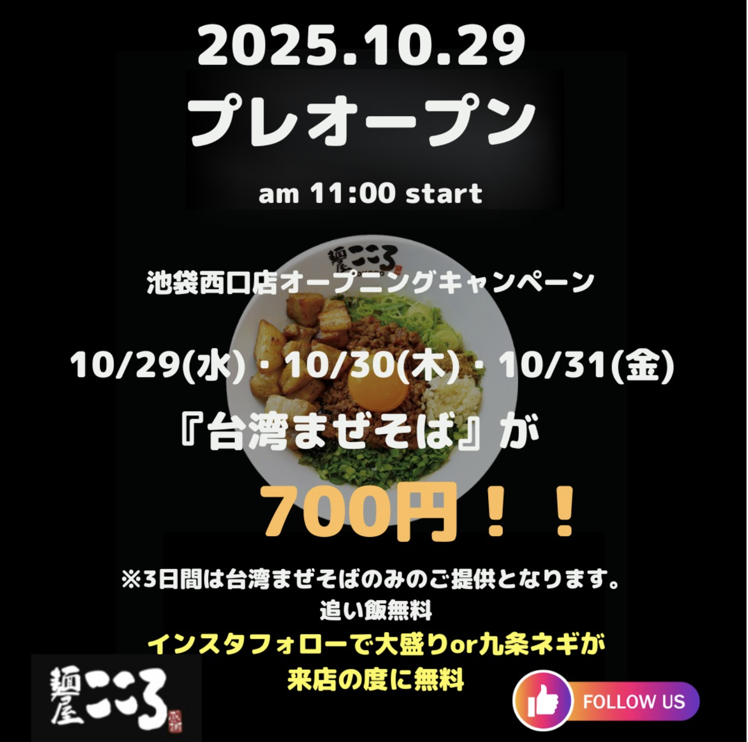 「麺屋こころ池袋西口店」が2025年10月29日(水)にオープンいたします!
