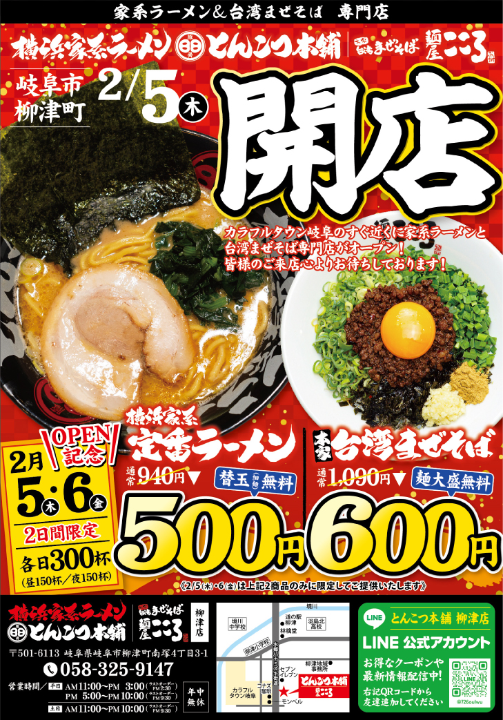 横浜家系ラーメン「とんこつ本舗」とのコラボ店第二弾!